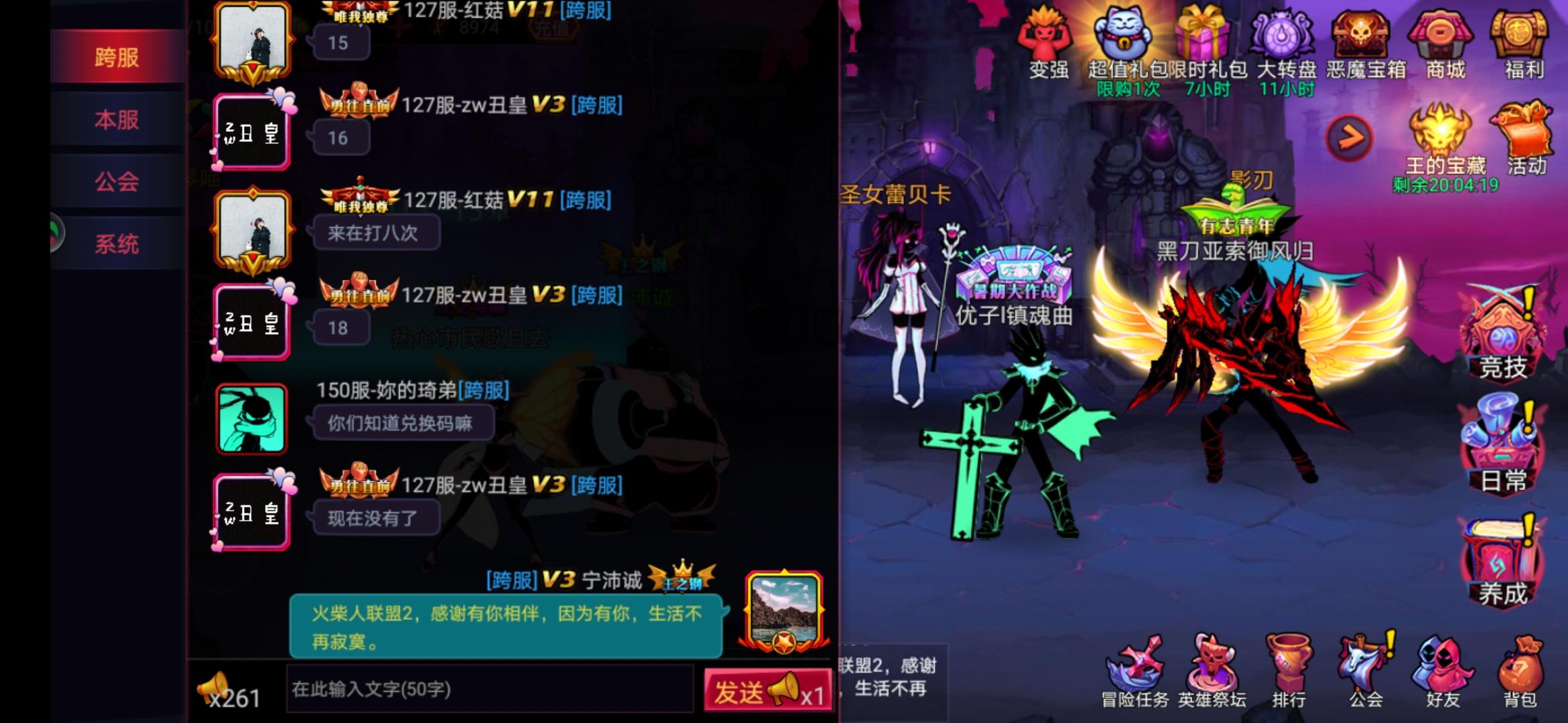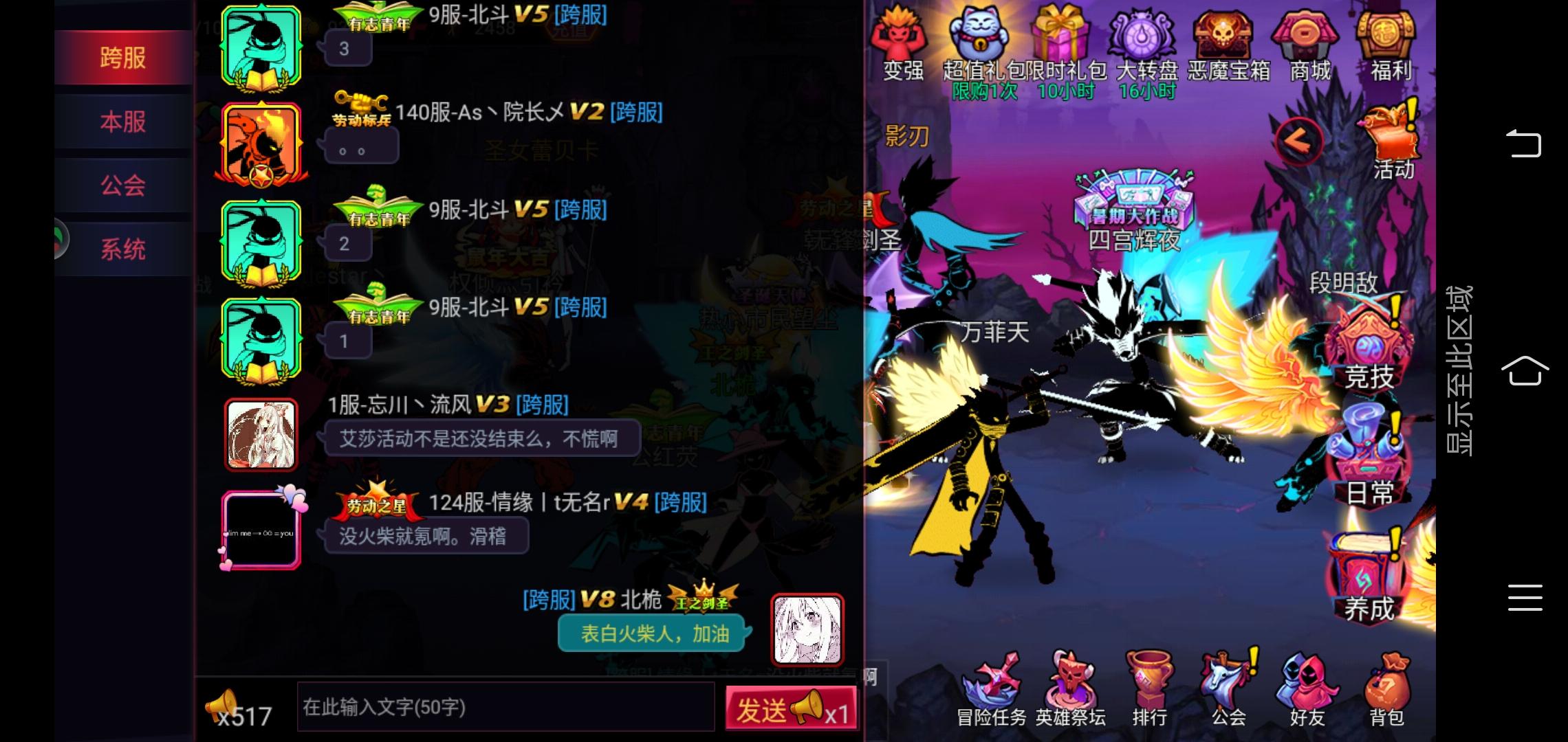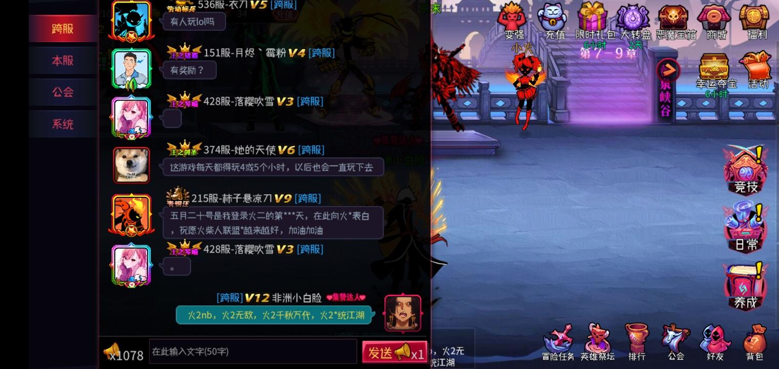 很久以前就玩过和火柴人相关的小游戏,上一年搜了一下火柴人,意外发现了这个游戏,虽然不氪金战斗力不会很高,但花点时间,慢慢培养,看着战力一点一点提高很是过瘾。人物做的也算很细节了,配合装备,技能,宠物,战力可以变得杠杠的。有时候游戏会很卡,服务器出问题,但小火会很贴心的给火柴补助。火柴人联盟2.加油!