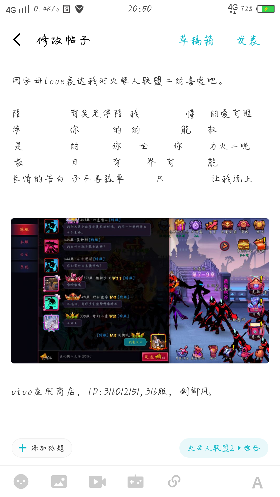 前进路上有了你,不再孤单与寂寞。平淡生活有了你,甜蜜幸福有滋味。520我爱你,火柴人联盟2TapTap平台+507服+ID507002619+金刚胡芦娃