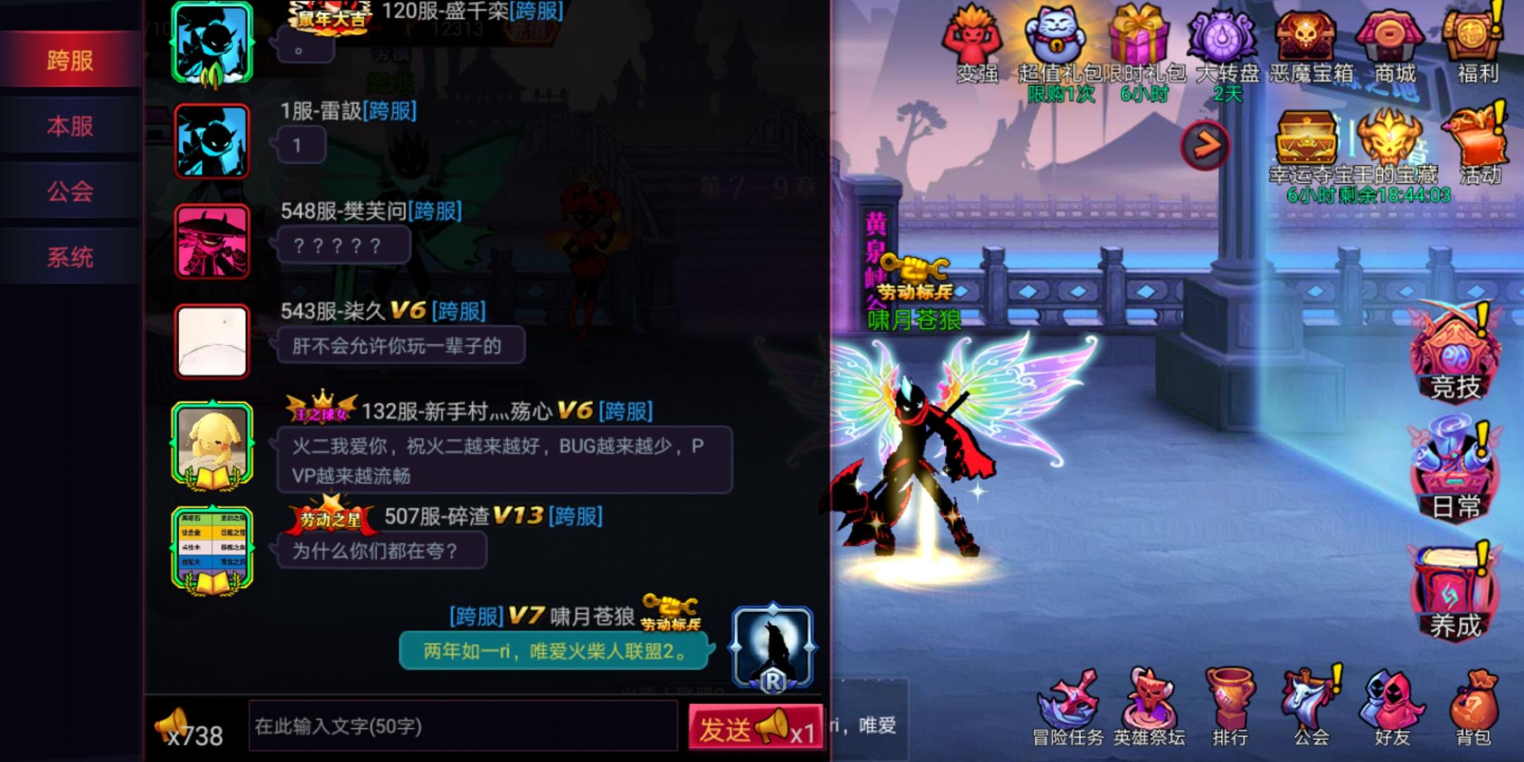 火柴人联盟2 陪伴了很久 从开服到现在 这游戏从一开始大家就很喜欢,二的时候喊着这次要做足百位英雄,我们等你,不论如何希望你不要忘记初心,继续加油,火3我不期待,我只期待火2越来越好。应用宝一服 ID1080104 权倾灬和风
