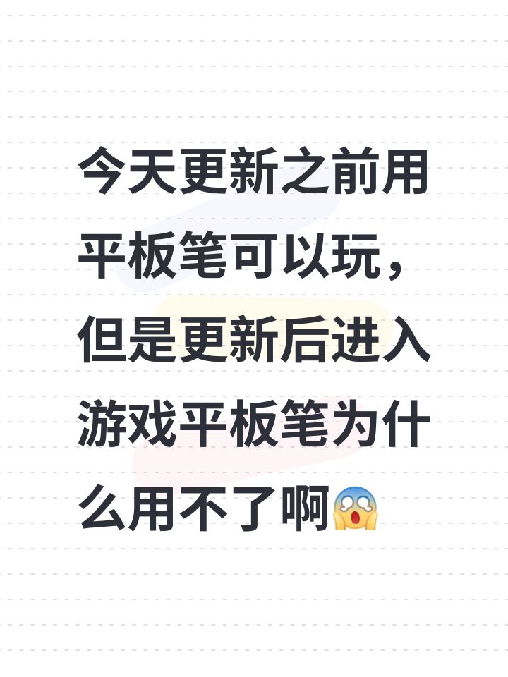 今天更新之前用平板笔可以玩,但是更新后进入游戏平板笔为什么用不了啊#