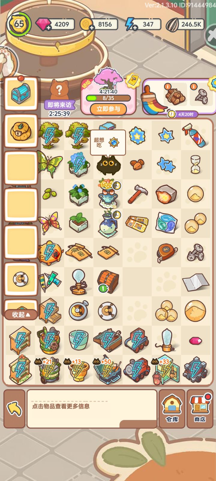 bug怎么多起来了,昨天进游戏界面不停闪退,今天这个物品栏东西已经点掉了格子还占着,这里头到底有谁在啊?下面的不让上来,非得我花钱开嘛#乐缤纷庄园 #