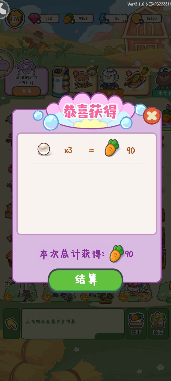 主111,农场156,佛系玩家,微氪玩了这么久之前的活动都还好但不得不说这次的新春活动真的太让人失望了官方不认真对待这个游戏就下了吧打年兽还有kpi,真的心累活动时长还这么短BBug补贴也没有诚意回家吧官方#乐缤纷庄园