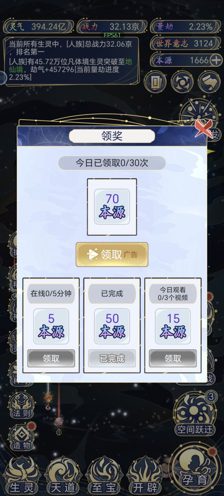 每日领取本源不给了吗,这几天登录都不能领取