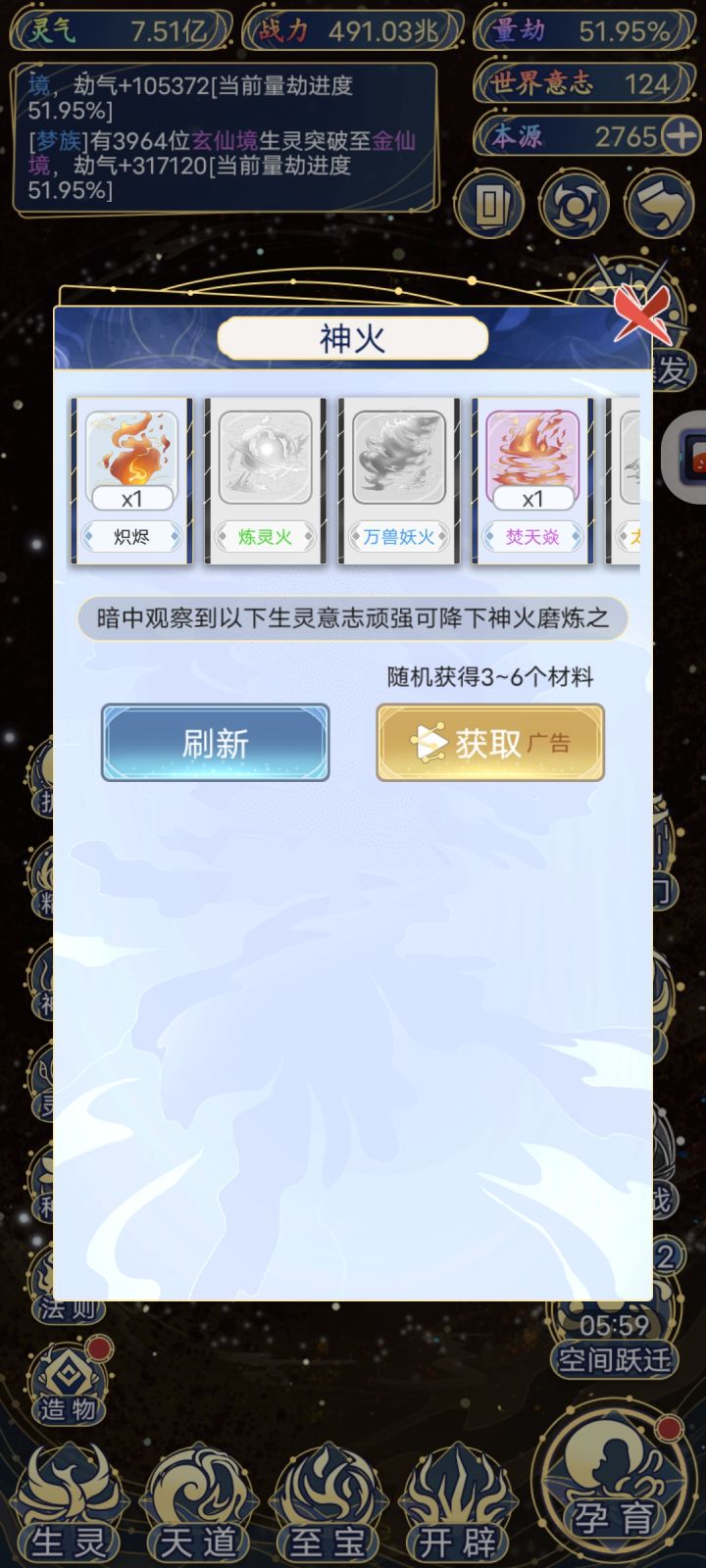 发现刷新了半天刷新不了,显示解锁生灵才能刷,希望尽快修复,挺好玩的挂机游戏,很容易上头