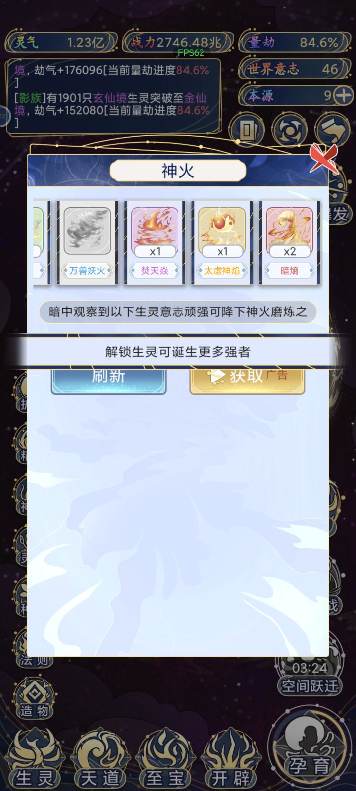 希望可以给每一个界作为一个守界神器,不可销毁。界内的生灵越多等级越高,神器属性越强。灭世劫后,神器回到基础属性,基础属性神器每经历一次增加1%,每经历一次灭世劫神器对界的灵气增幅1%。宇宙有创世神器,宇宙纪元大劫神器可抵抗,宇宙生灵等级越高抵抗次数越多。万万劫后诞生创世神灵。游戏通关!