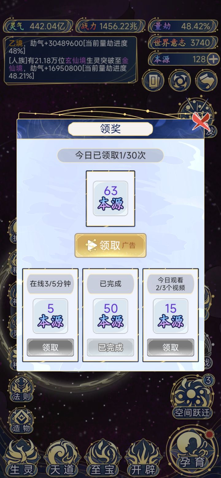 希望能增加一个看广告或者其他聚到突破准圣巅峰的,不然等多久都不知道,望采纳。