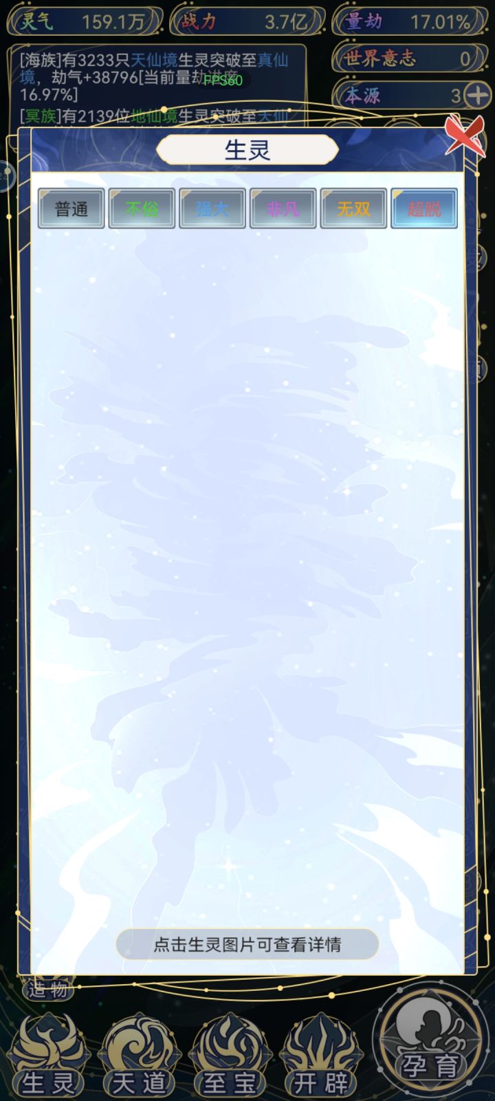 bug,反应了小肝没看到,心好累。辛苦玩到9000亿,突然变回3.2亿,高等种族全部消失。