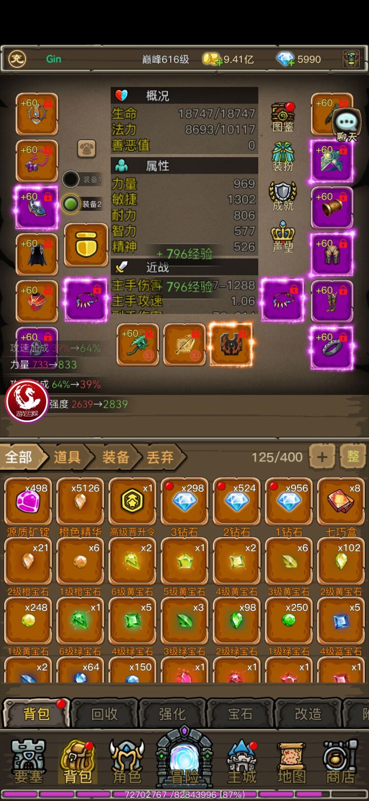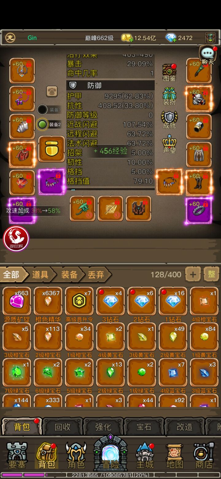 总属性:血量2万,闪避107%,攻强5700,暴击60%,攻速64%,元素282,增伤40%,爆伤79%,50万木桩秒伤7000+,具体数据看下面附的截图先说明下,初、中、后期各阶段配装都不同,适合自己当下就最好,不能盲目参考,比如暴击下阕要求33%,如果暴击还没满足最低要求,那么带增加暴击的装备绝对是当下最优的选择,因为萨满就靠乱舞,但触发乱舞需要暴击,如果暴击不够,乱舞就会中断,DPS就打不
