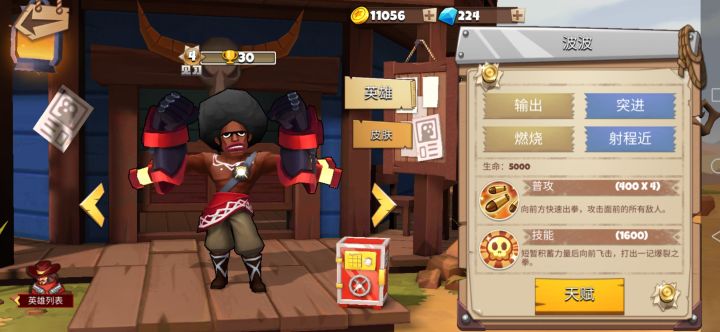 1、波波这位英雄,由于普攻距离特别短,因此血量特别厚实。普攻为向前打出四拳,每拳四百伤害。大招为向前突进一段距离并造成1600点伤害,弥补了波波手短的劣势。2、波波比较适合打近战,最好埋伏在草丛里阴人。3、波波的传奇天赋——火焰护盾一出,几乎近战可以无伤杀人。当然想要获得传奇天赋最好的方式就是开箱子。而箱子就需要大量砖石加入西部战记QQ群587606757,加入即可获得500砖石,做二个