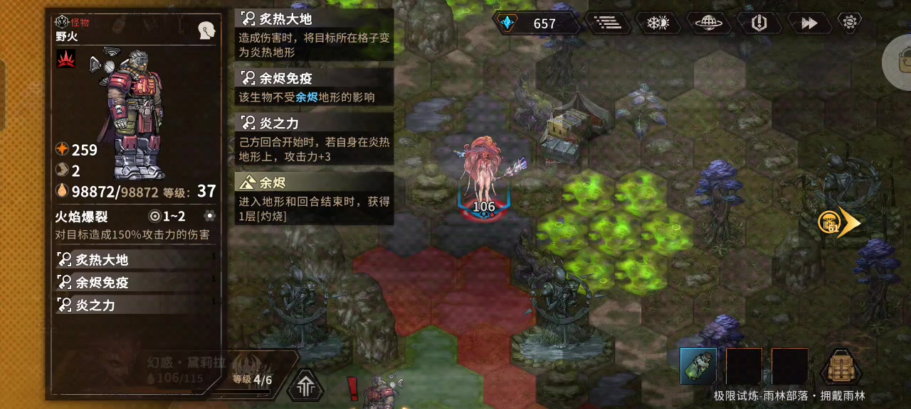 刚好打33,牌还不错,镶嵌也有移动,那么这个一般绕着走的怪就可以生吃了(收益低,打完不是掉血就是污染爆炸,稳妥点只要求过33的话,不建议打),拿下更多的通识点!以后有别的不好打的怪,我手上牌也不错,也鹿来给大家伙儿康康[表情_斜眼笑]。 这个怪就一点很恶心,不能站撸,必须跑动,否则脱战后依旧被烧死,所以要确保自己有足够的移动空间,有充足的污染空间。如果地形很窄,那么要有移动力。战斗中尽可能的快速发