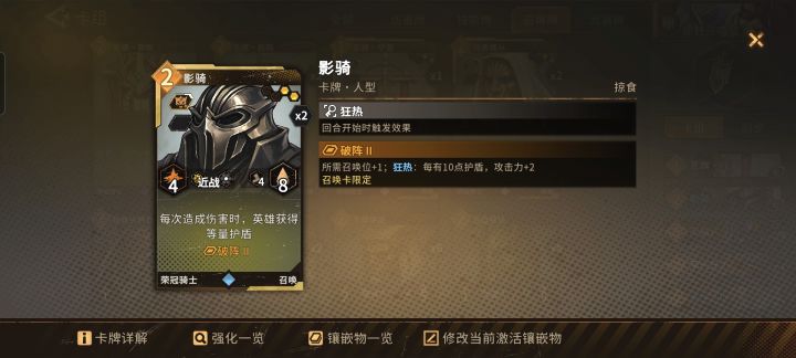 这是个弗里茨被影骑包养的故事。。。你说伟大的旗子大人?不好意思,人家包养了荣骑。言多必失,言归正传,本攻略旨在帮助牢弗玩家点明一组卡牌的毕业去向和一个终极毕业的可能卡组,终极毕业仅是个人见解,毕业卡组参考多位排行榜牢弗大佬。省流:初始卡组:援护2《圣旗•守誓》*破阵2《影骑》*动力2《至福恩泽》透支2/动力2《荣光庇护》动力2/屏障《圣洁之