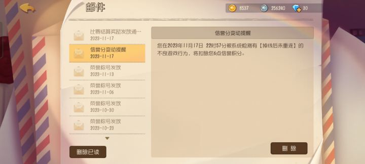这个星元伙伴策划对抱直接崩了,回来被扣了6分,还没对局记录