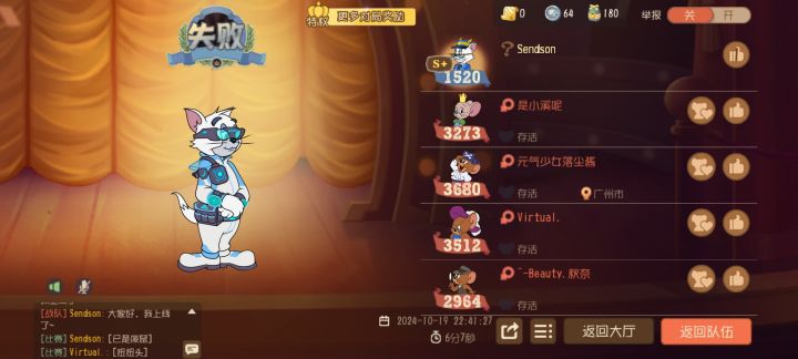 猫和老鼠真好玩,一个s9老玩家回归,以前最高才上过猫铂金鼠砖石现在更是才白银,打匹配能遇到鼠皇车队真平衡真ce划的好玩啊,剑客还是s21国9朵朵,你是觉得我有猫皇水平吗#猫和老鼠手游垃圾