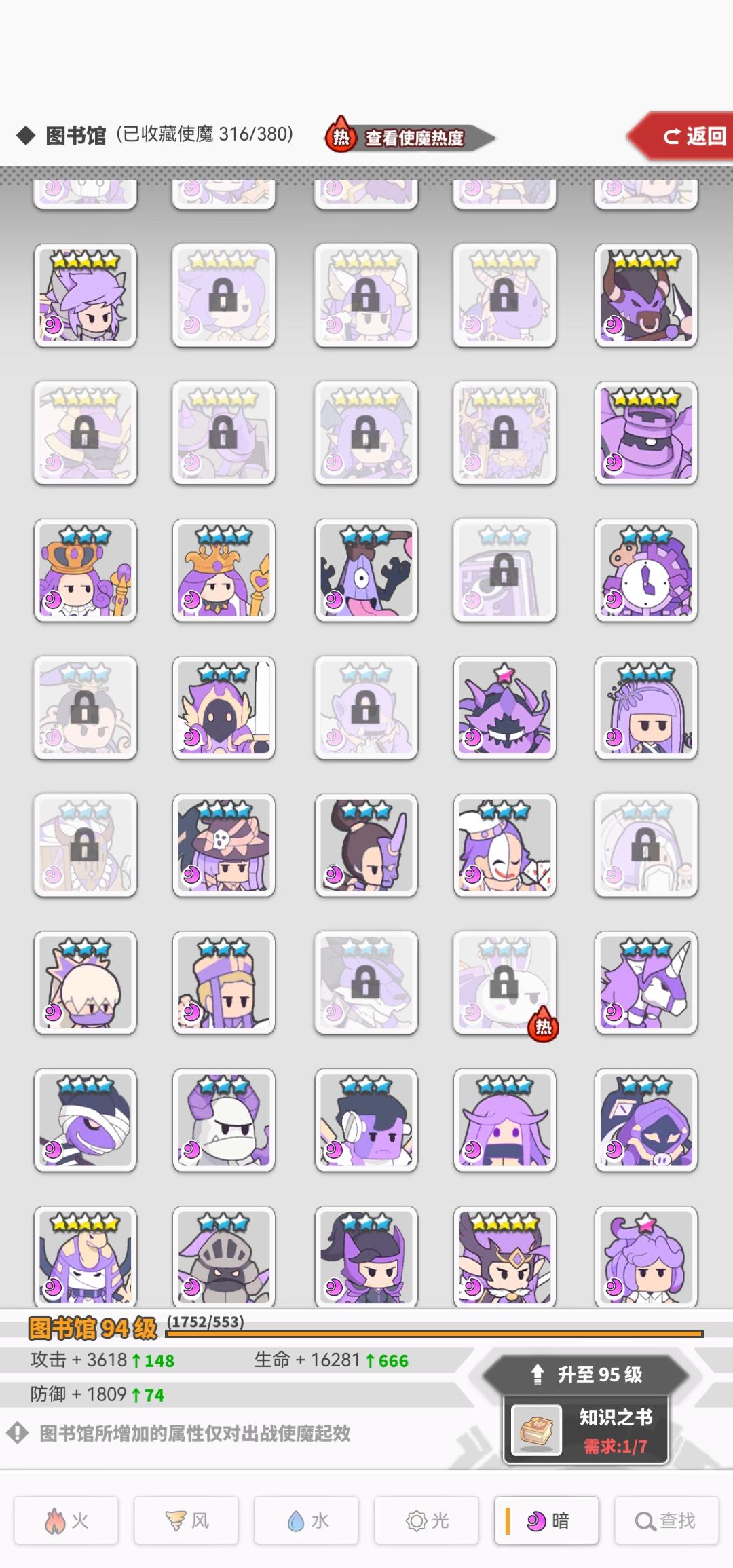 总结小怪都是有恶心人的被动,火熊,火小丑,火书,火魂女等等。。 我暗猫换个水镰刀封被动可能会好一点,反正每一关都要打很多次,运气好才能过。(自动打)自己点的话,有时候为了省技能,一下子就被干掉了。所以自动打更好一点。 邪眼除了变态以为,战力限制也和另外三个不一样。其他三个到19了。邪眼只能到18一半不到的小关卡。