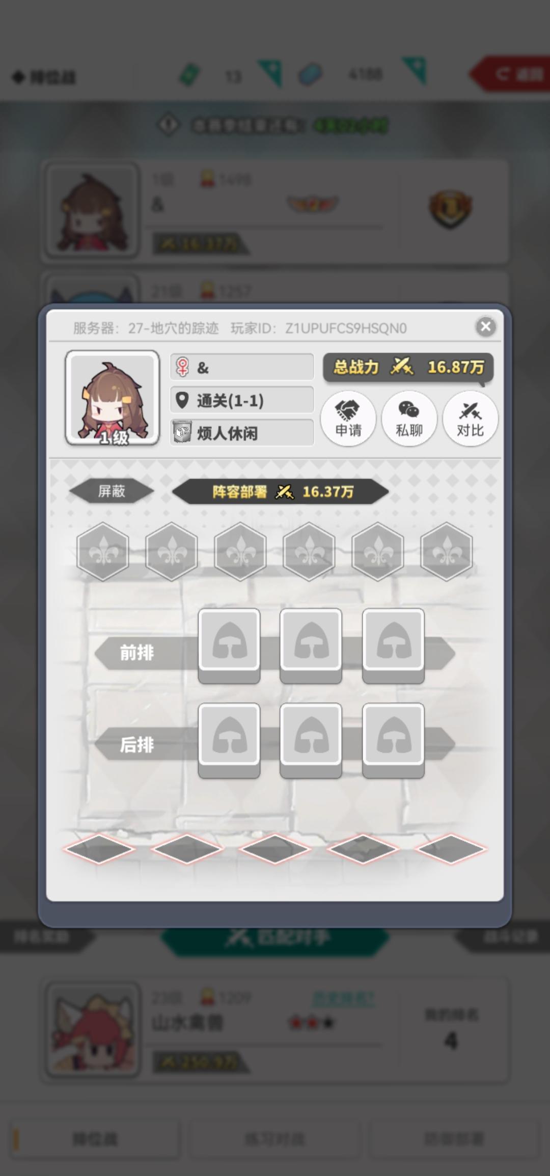 竞技场有一个BUG,可以看到第一名什么都没上阵,我打他就会一直卡在进去的页面读取,一直进不了战场,当你退了游戏在进来就会变成失败,扣分,可以加急处理一下吗,这种利用BUG搞的游戏体验很差啊,我是27区榜一