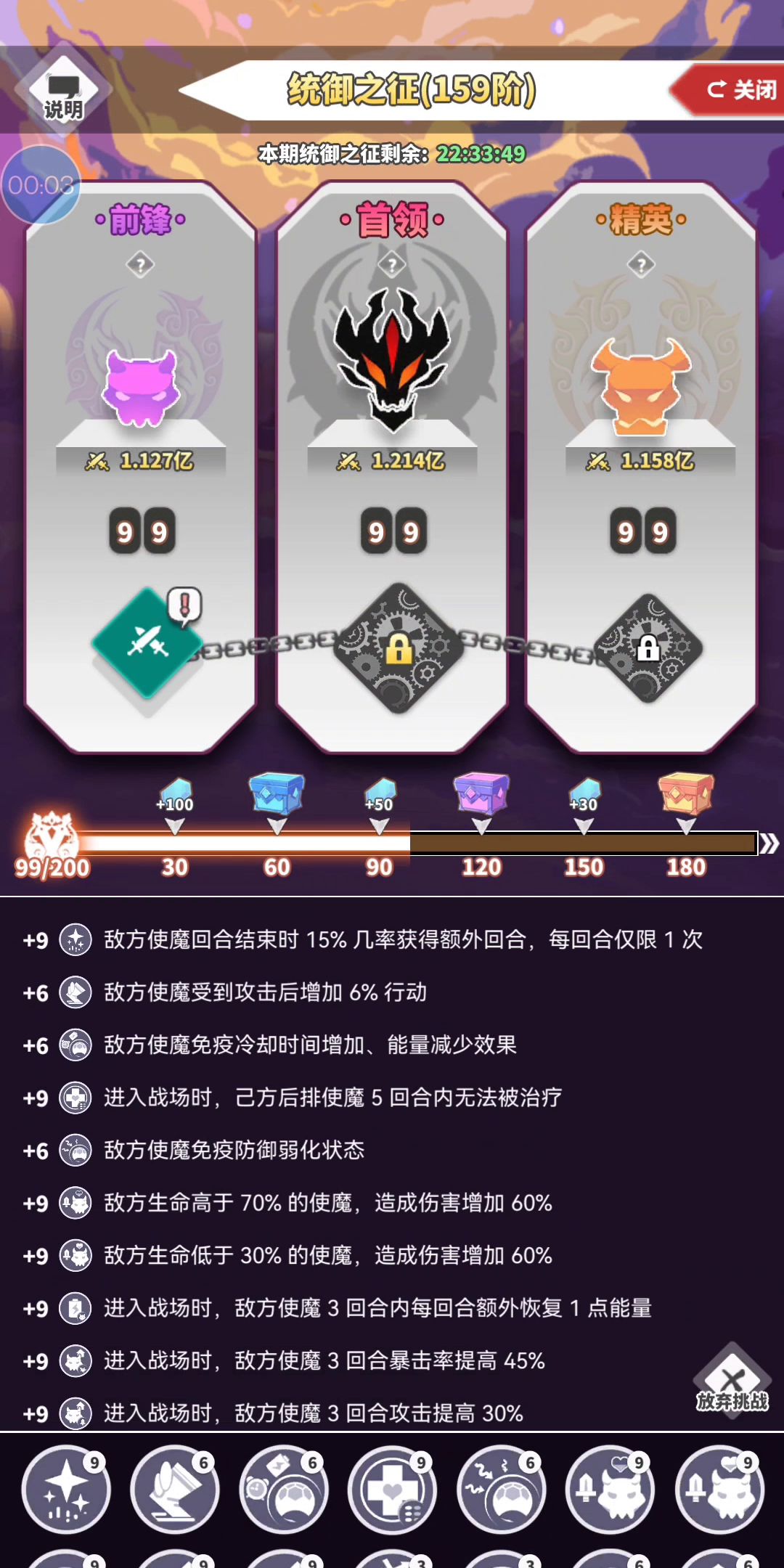 今天降群伤,增单伤,敌方带眩晕,增加暴击。 必备火熊,兔子队扛不住,所以用的常规队。 第三关的火铠甲比较恶心,需要优先击杀。#新游观察局#游戏讨论#攻略#使魔计划#使魔计划统御