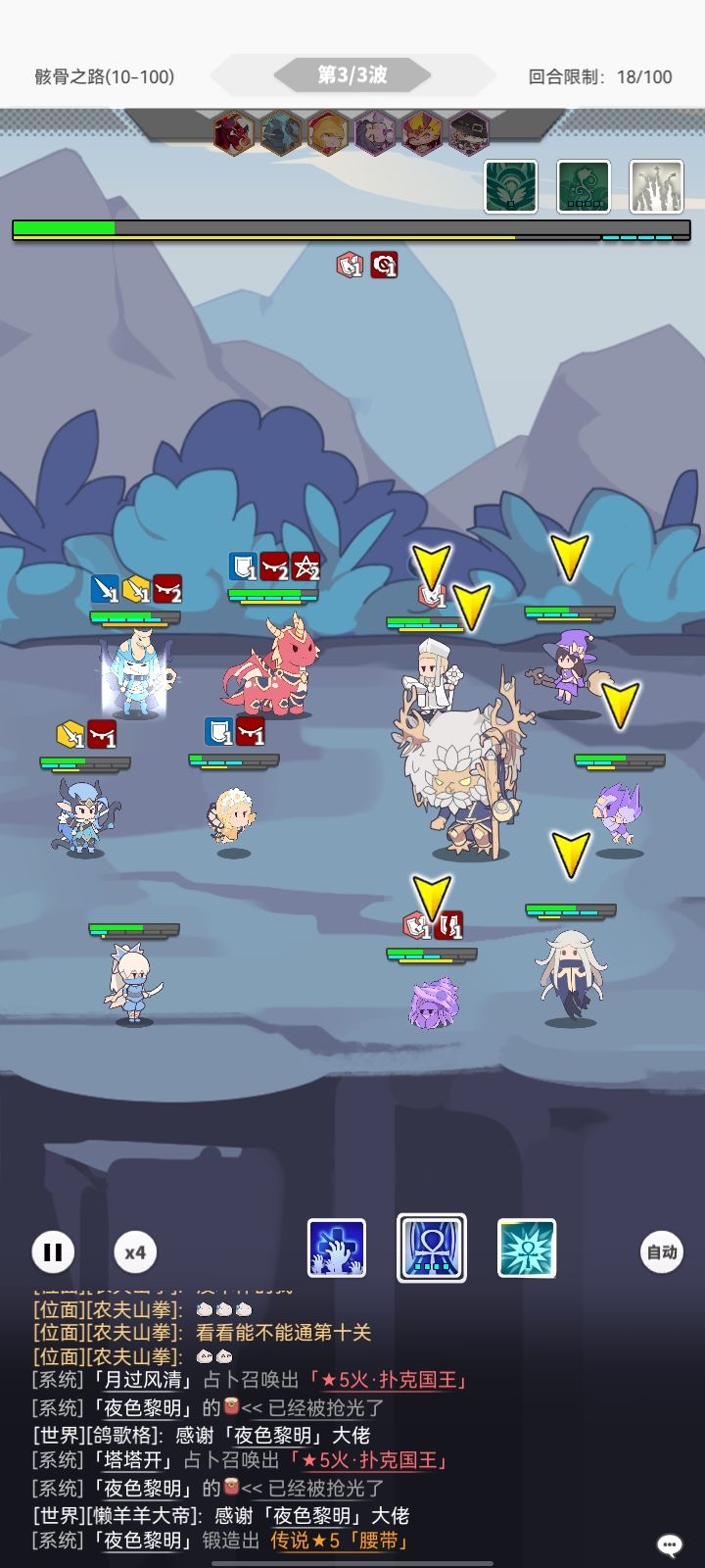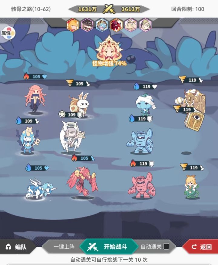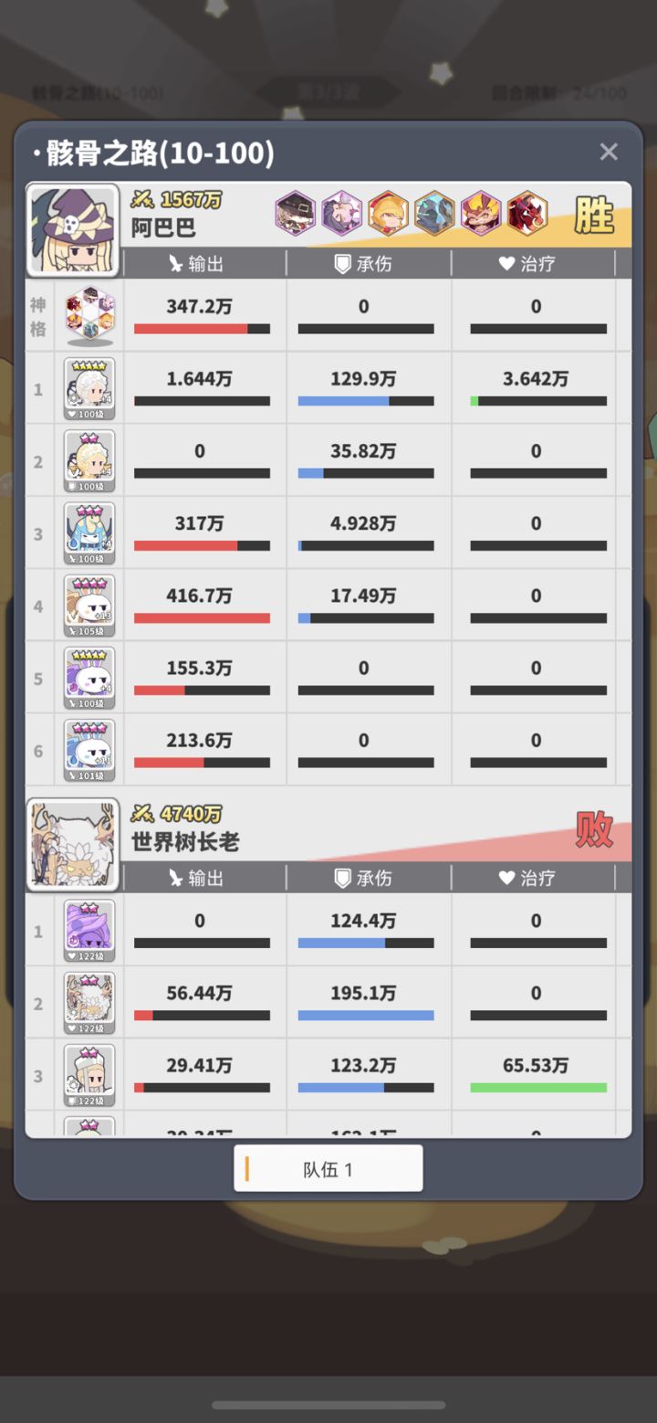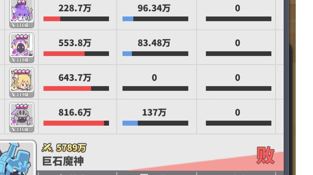 就硬2带4,纯靠赌概率miss掉别人的控制和伤害,放出刀哥的大,最后二十关也就打了200-300次,快三小时了,就硬赌,肝放置手游我有一手的
