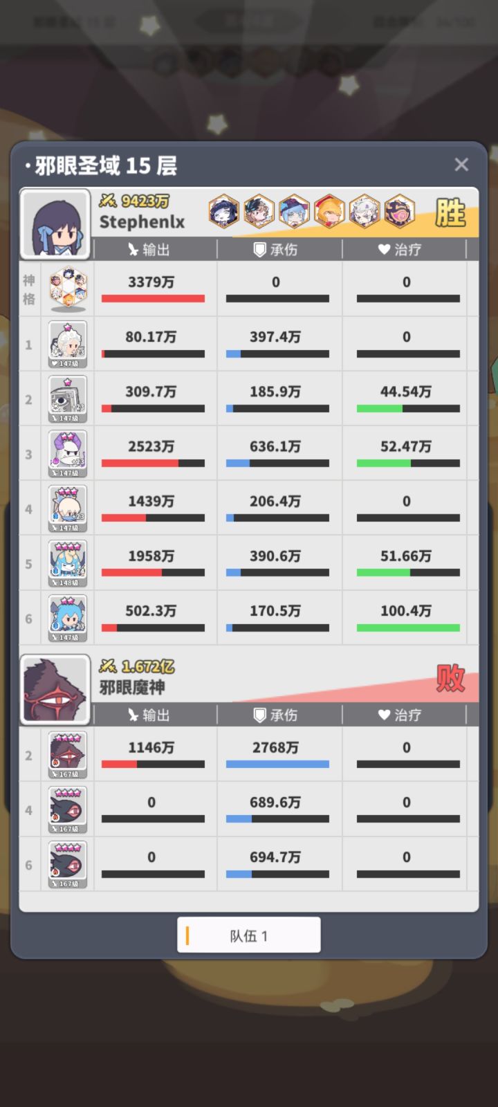 配图是低配邪眼阵容,一关石像鬼混乱,其他普攻满员过,二关仙子拉条光书二技能,石像鬼秒boss满员,三关水夫人混乱,光书套复活,满员过,boss关看石像鬼和水影舞暴发就过。战力碾压是关键,不然老实等光天或者光树或者带四月花的石像鬼过。服务器:安卓44~精灵的仰望玩家rid:J836UFMR9FHGU2