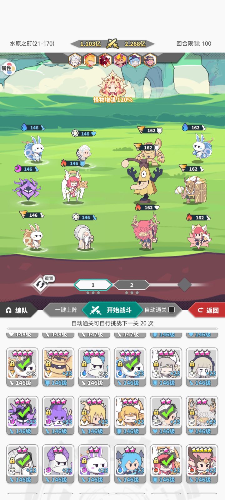 服务器:安卓46区 业火的起舞RID:W246UFPR9F8500这游戏基本也进入后期了,PVE阵容基本也固定了下来,大同小异,给大家分享一下我目前自己在用的几个阵容吧。ps:神格也算阵容的一部分。兔子队,水兔满技能主c,复活神格拖时间等炸弹爆炸镰刀队,用火雷鸟拉条可以不用调速度,保证镰刀防御最高即可单秒BOSS的队伍,石像鬼穿速度鞋,速度比火鸡快就行了,用神格调整怪物血量保持BOSS血