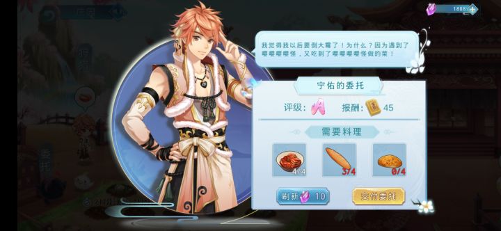 委托有五个等级:S A B C D一个菜耗费四个材料收益排行如下:B—6菜——30金C—3菜——15金S—15菜——60金A—12菜——45金D不要做也就是说,委托刷新后,优先接BC,S次之,最后是A,D不要做(当然,材料足够除了D都可以做~)