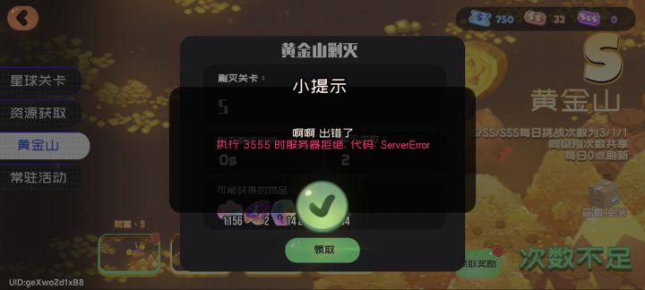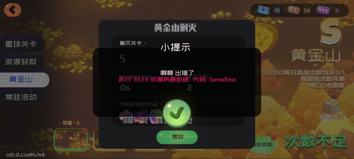 bug反馈,黄金山扫荡后,领不了奖励#弹力果冻