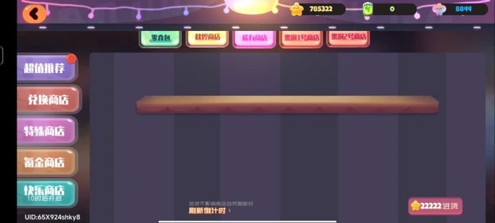 太怪了,重登了几次都是稀有商店出问题还有之前时不时就掉线转圈,几个加速器也没找到弹力果冻的,家里网玩的几个外服手游从没这么频繁掉线转圈的