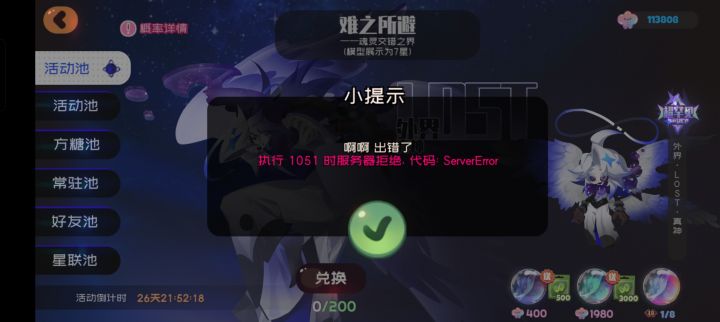 抽卡报错,世界boss打不了