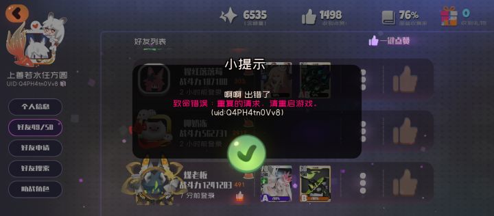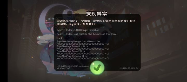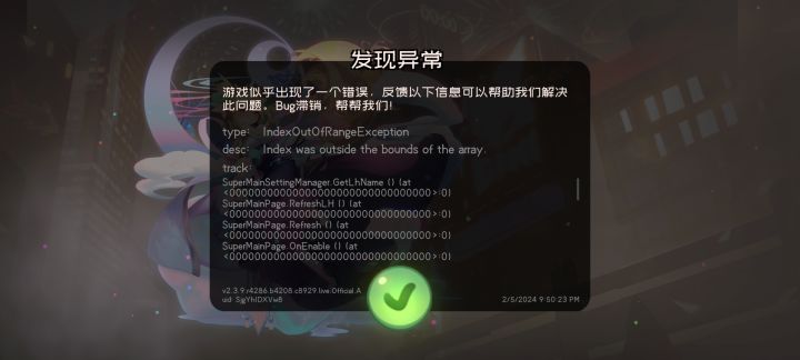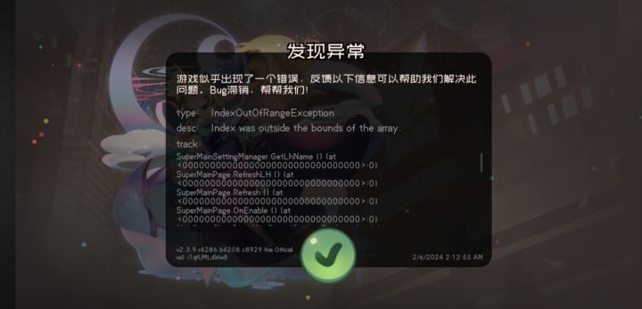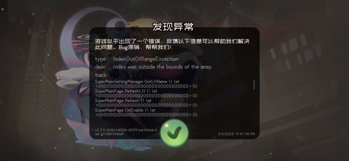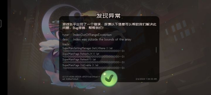 今天刚入坑,玩了会退出去重登就成这样了,一直显示发现异常,什么都做不了