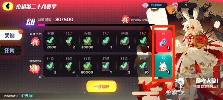 如果你想要留着体力,一个个点,你会发现最后的60级奖励领不了(刚好重叠,都能看见下面的皮肤影子了)这很难受希望可以改一下