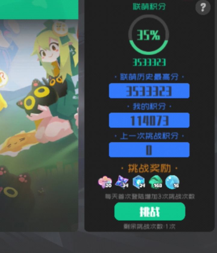 我打了一把,感觉积分不够满奖励,就去打黄金山了,来论坛找配队。打完一把黄金山,回到新活动就发现次数少了一次。麻了,这下更不可能满奖励了