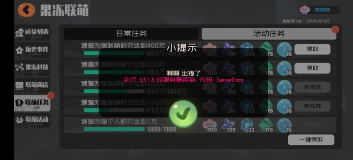 6点37分,在做密钥任务,升级完角色,然后去重置方糖,退出界面,5000果冻被吞了2212262871