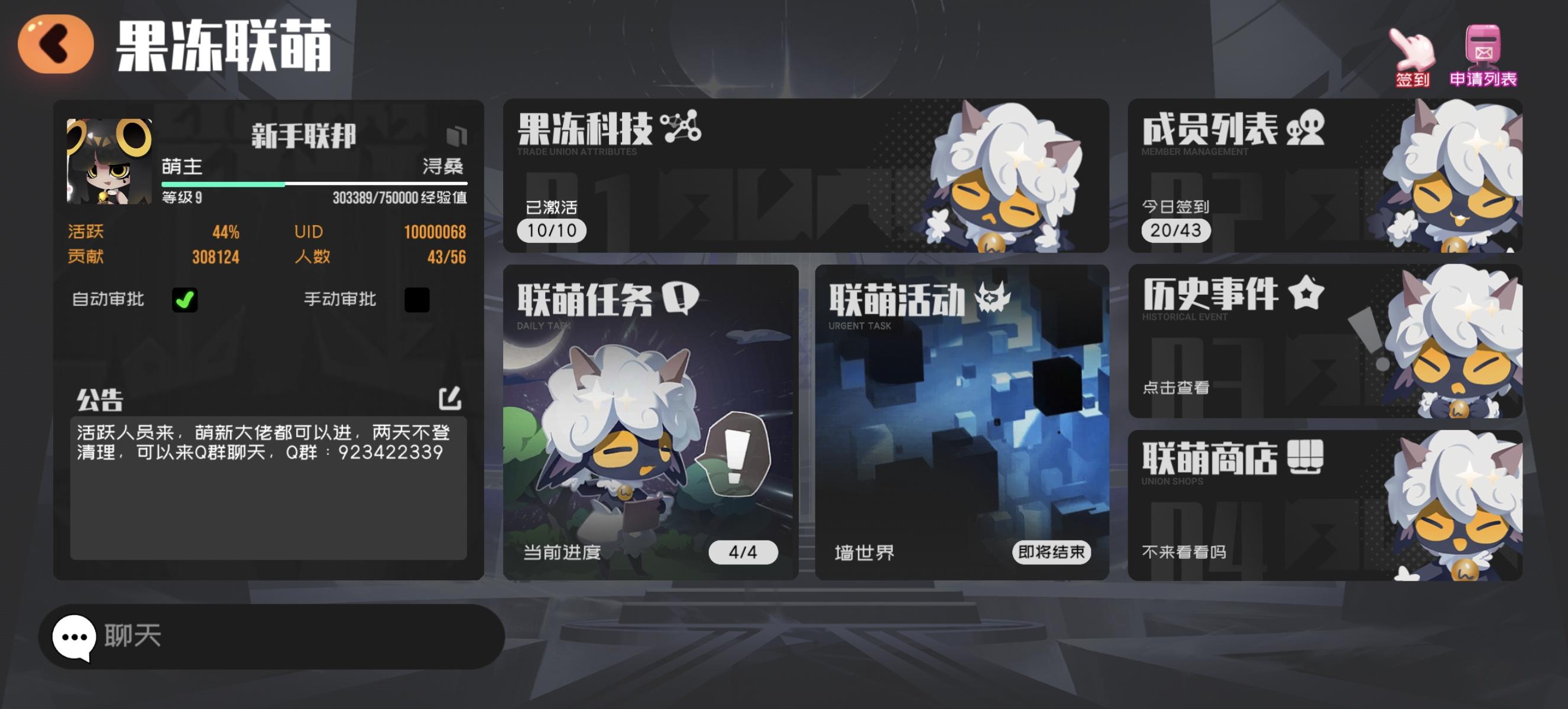 前盟主跑路了,新盟主上任想快点点科技,活跃就来,可以进Q群聊天,里面的人说话又好听,我超喜欢在里面的