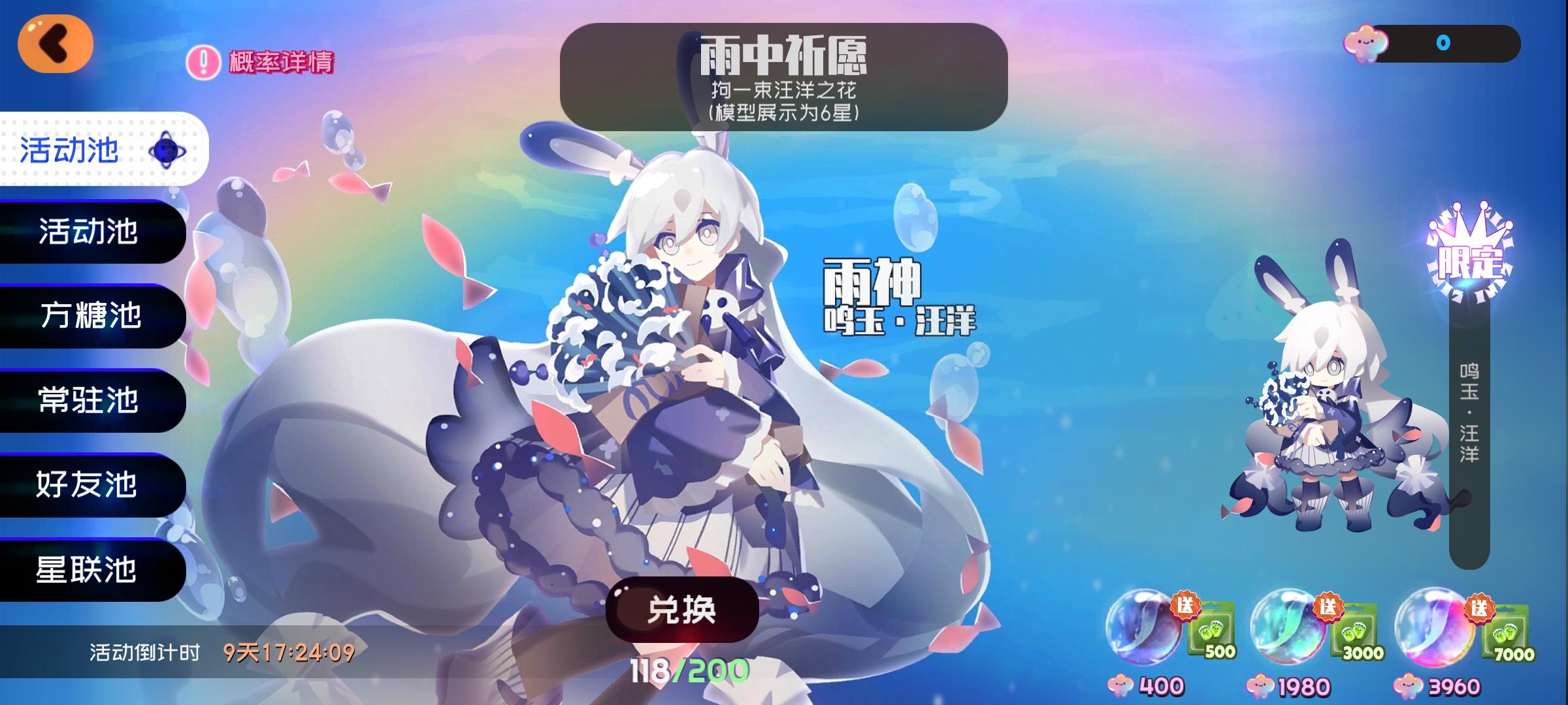 小柠檬:抽了118次(雨中祈愿),抽到3个限定,亏死了!抽了64次(深海之冠),也就2个限定,还行还行。#游戏讨论#国产游戏#二次元#原创