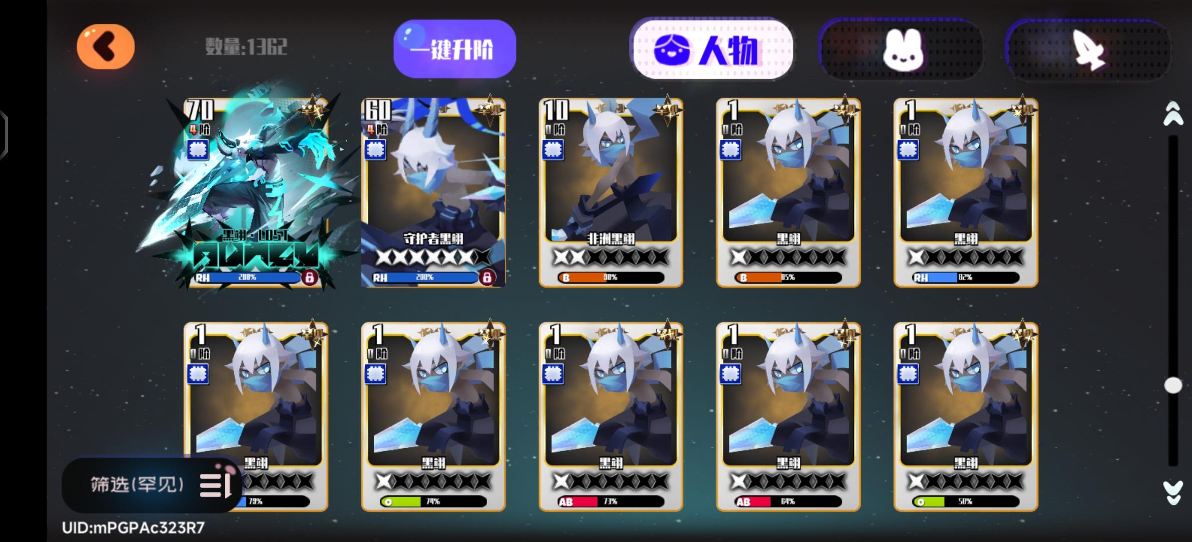 卡池详情人物:除当期以外所有角色概率:所有超罕见+限定总概率1%武器:除当期以外所有武器概率:所有超罕见+限定总概率1%(人物+武器所有超罕见+限定总概率2%)其他不表述