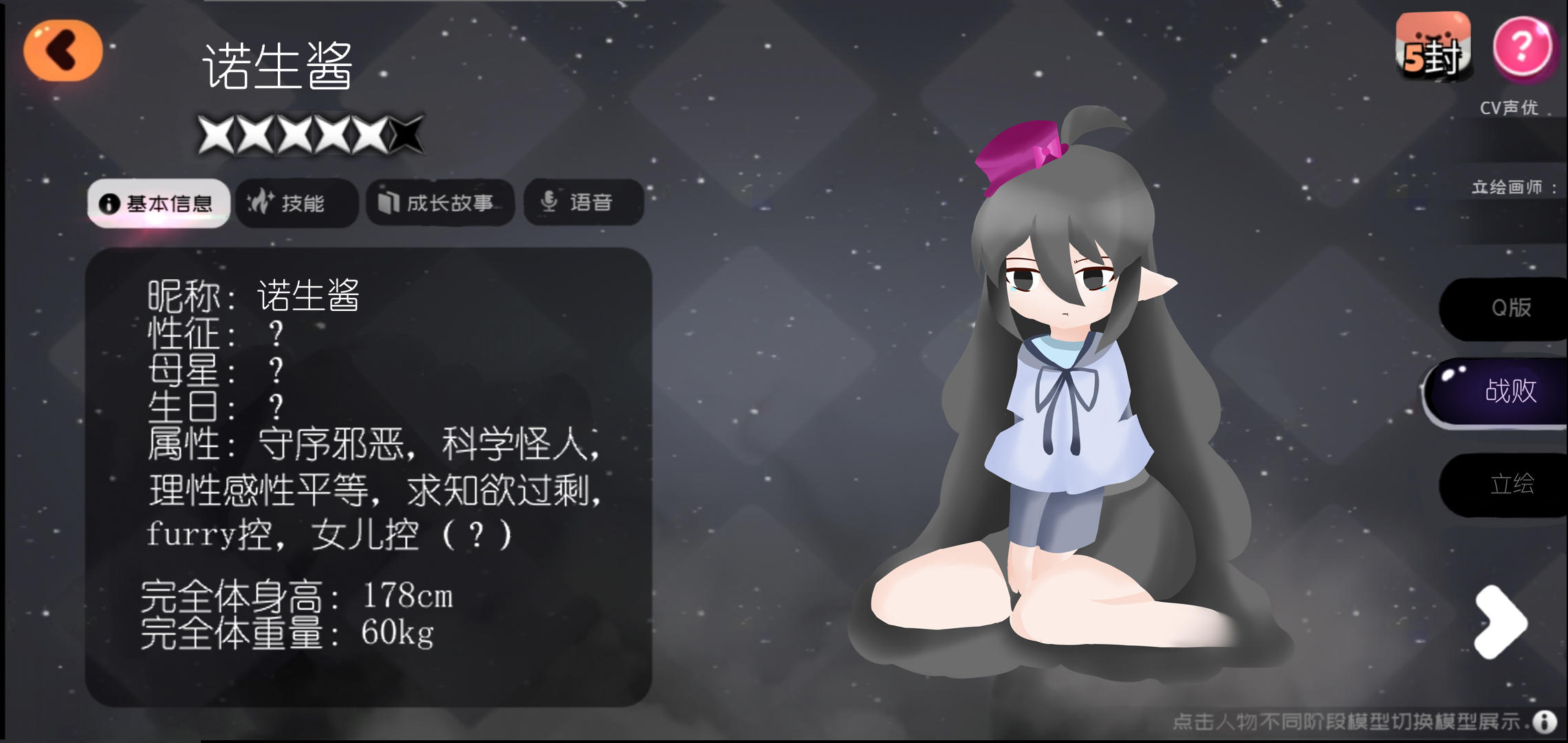 成长故事五:自从诺生扮演起实验员,早已超过了大部分人类所拥有的智力,也继承那些实验员对学识的求知欲望,以及所有,人类的欲望,但是诺生似乎有自己的想法,TA从来都是为自己而活