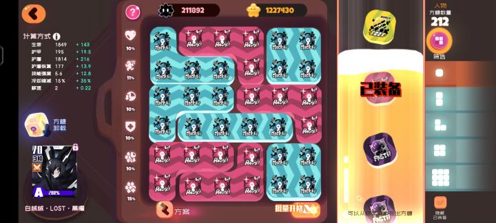 就我自己这期玩关灯玩的是真不太舒服,被克制,伤害不够,然后橘九换了黑绒绒,体验直线上升。黑绒绒是真好用,上个版本入坑的完全可以参考。黑绒绒升阶不够可以多凹几次。