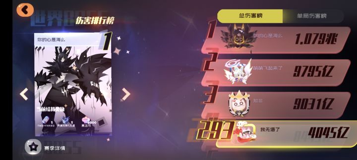 太摆了发现总榜快掉300了,最近刚把伤害突破200亿不知道能不能稳住