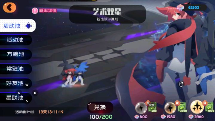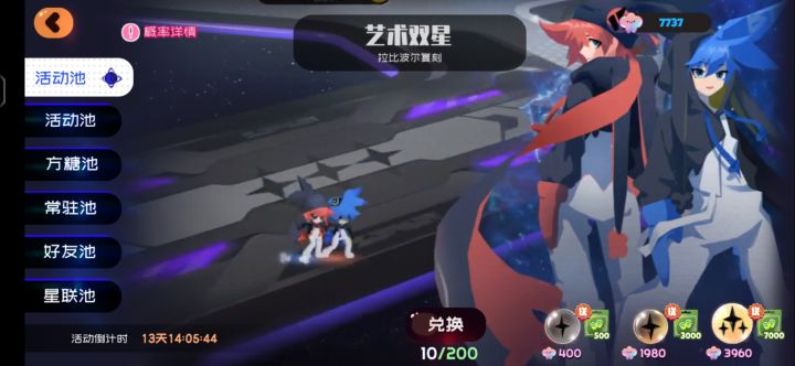 好消息:70抽出了泽塔,乐乐,失落,月光疾风坏消息:200抽一只双子都没有,硬换的大保底