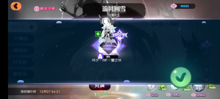 上次月汐池抽了170终究还是错过,这次30抽出了,加起来刚好200抽,我大为震撼。
