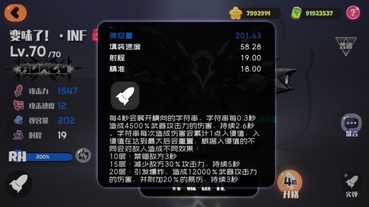 优点:攻击范围内攻击数量无限。攻击带有减攻的负面buff,本身输出很不错,非常适合风筝群攻。能量武器的高级挂件,挂件能力位列前茅。