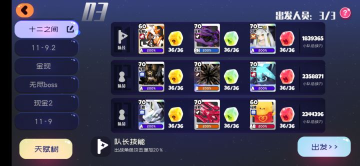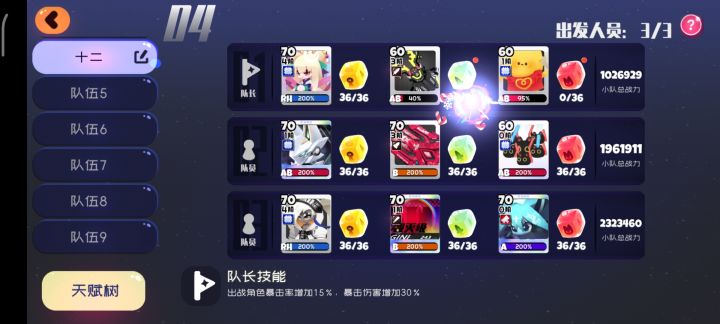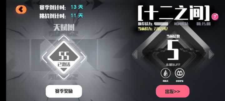芜湖~配队和上次一样(具体看上个贴子),队长的武器用来破盾,黑樱挂无敌因为没控(为了不吃30%减伤)最好和怪转圈圈,开极简,打BOSS时离远一点好躲技能我第十二层打完后也还剩3分半(BOSS房没用复活币,用了大约4分钟)大技能带一刀,好了就用(我经常忘记用:)悄咪咪问一下,听说这次有bug,天赋树小天赋不生效是真的吗? (°_°)