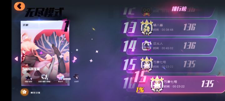 我看好像没什么人发黑绒绒队伍的无尽,我来发一个。黑绒绒 技能强度 猫剑 暴击爆伤 蛋仔全攻速慕云羯 技能强度 折火,暴击爆伤攻速(我听说攻速要超过10,所以带了攻速)xh5 全cd 猫改 全换弹速度 就开局聚怪,打打打就完事了buff选择就是怪全部变布10s免疫1s99站立不动加伤害宠物攻击加爆伤(所以蛋仔是全攻速)对减速单位增加伤害(这里我忘记猫剑无限减速了,我本人选了眩晕,哭 (o´Д`o)ノ