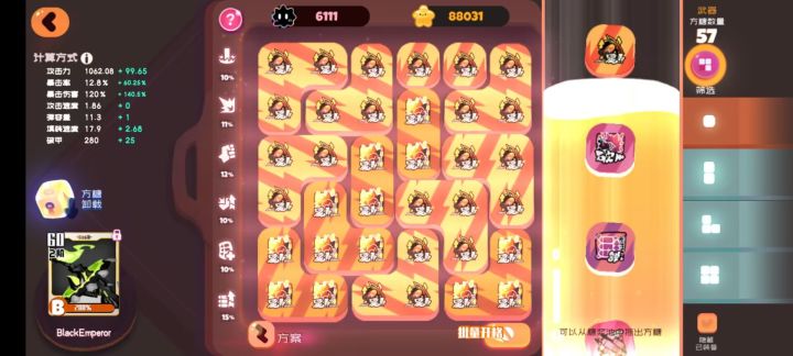 今天无事逛论坛,看到好多有钱萌新买了修罗鸡却不会用,太可惜了,所以简单的出一期视频。 视频里的所有角色都是0方糖(毕竟萌新应该也没方糖) 可以看出,鸡哥打资源关还是比较轻松的,所以我想给那些买了修罗鸡的萌新们几个建议。 第一:优先开修罗鸡的方糖格子,最好是4个4阶暴击和5个4阶爆伤(白绒绒队长的话可以9个4阶爆伤)没有4阶的话也别急,有什么上什么,反正把方糖堆满就行,因为堆满了也会给额外属性。而且鸡哥一定要洗A血型! 第二:不要着急练什么小神仙什么的,优先练xh5,白绒绒,妖炽(白绒绒和妖炽有7星就练7星的,没有可以练6星的) 这3个人物是铁打的辅助,练好这3个人物,鸡哥资源关随便过!有了资源才可以随心所欲的练其他人物。 第三:宠物方面优先选择鸡块,能6星就带个6星鸡块和一个5星鸡块,不能6星就带个5星的和4星的。 最后一点,武器可以先练剪刀,就是我视频里面白绒绒带着的那一把。一星叫什么我忘了,反正就长的像一把剪刀,名字里好像也叫做什么剪刀。