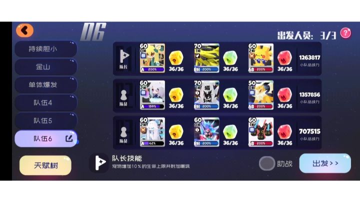 阵容:队长橘九,武器任意,灯泡朵朵,武器任意,达拉崩吧(没有的话可换其他控制或者恢复宠物。)任意强控(推荐黑绒),武器任意,打尻煤球方糖:橘九cd堆到30%,其余堆生命。生命糖给橘子树提供血量加成,cd加快放橘子树的频率。灯泡光环和技能不吃方糖加成。但仍然选择生命拉满。提高存活率保证技能可以触发。(水母无法触发技能,只有角色可以。)朵朵朵朵的技能回血也不吃生命加成,所以选择