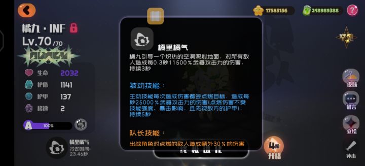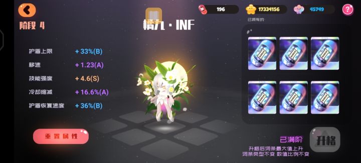 这就是橘九的属性的。满冷却可以到七秒以内。但也许可以和黑绒绒打一下黄金山,不知道能不能接的上?