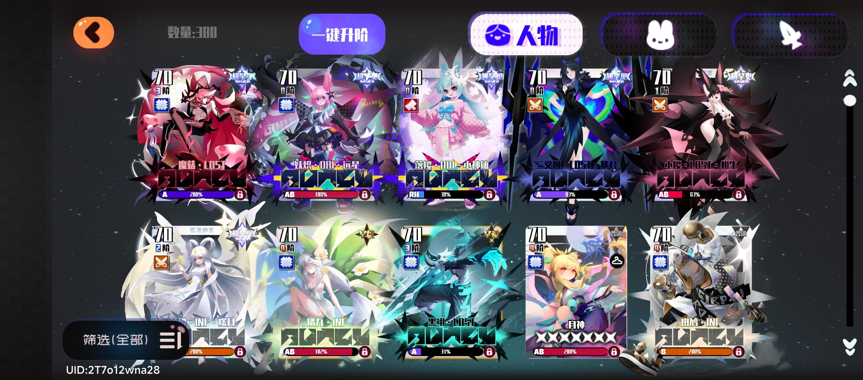(别买初始号,大概率科技号,会封号!!!)羞羞的小群欢迎入群交流群号:771939823新版本周年庆来啦,新地图也更新了,鱿鱼是不是已经不够看了,大家开始以秒犹拉忒斯为目标了,这就来送攻略,萌新拿上自己的辅助和c,搬个小板凳,这就开始首先还是先介绍一下需要用到的辅助罕见角色———xh5,技能可以给全体增加攻击,满星最多增加170%攻击力,队长技能20%自身技能150%普通角色——