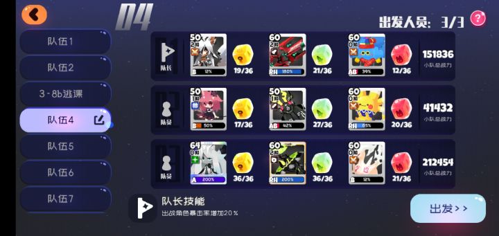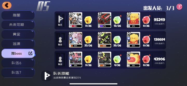本帖为没有白绒绒的失控攻略,输出武器为地魔首先白绒绒的队长位用XH5替代XH是队长,技能增加攻击力,队长技能再增加20%武器随便。人物,武器都不需要方糖2号位妖炽辅助,技能削减敌方护甲65%,武器要带剪刀。人物,武器都不需要方糖输出角色小粉狐,要带技能强度方糖技强最好大于20输出武器地魔,因为没有白绒绒,所以需要带5个暴击率方糖,7个爆伤方糖,血型为B,浓度100%+注意事项:妖炽