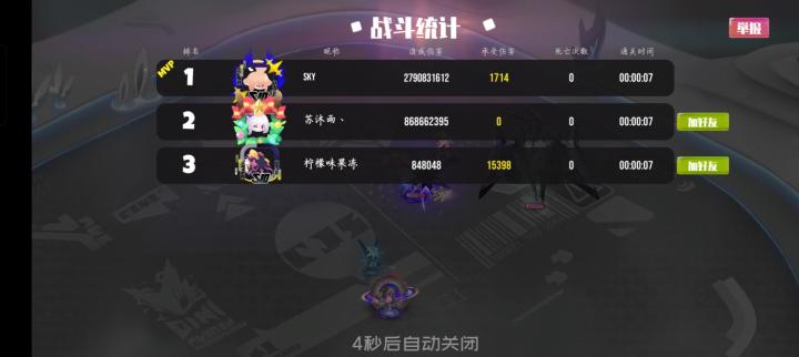 同样4+4(我没maki专武水桶用的四阶彩虹)霁华的联机强度简直离谱,差一点就能十五秒联机boss了,单人更是五十秒联机boss(我没有4+4小樱不知道小樱单通有多快,但是霁华这也很快了吧)。由于霁华队长有45%的破甲,所以xh5作用相对较大,也就是说对野队的配置要求也没那么高(maki也是,但是maki没霁华快)。别升maki拉,升霁华吧