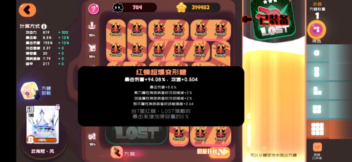 乐乐和失落,都是CD糖,雨神是技能,有一个角色的移速必须刷起来,方便跑图躲伤害,我刷的是雨神,其他三个武器都带的暴击和爆伤