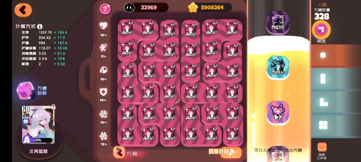 由于录屏问题和手机问题,导致掉帧,视频内才打了549e。 录视频的号目前最高打到560e,目前榜上第三的猫猫酱用这个轴打到了590+e(全队四阶),极限应该是可以到600e。 注意的点是西瓜要提前吃避免全屏的时候西瓜CD没好或者刚刚好(西瓜CD刚好的一秒内是点不了的),本轴需要四阶sCD三叉+红峰糖有剪刀减CD+巨灵糖 开局方向键往上推然后开自动。视频中后续开自动是为了方便快速释放技能,手操容易导